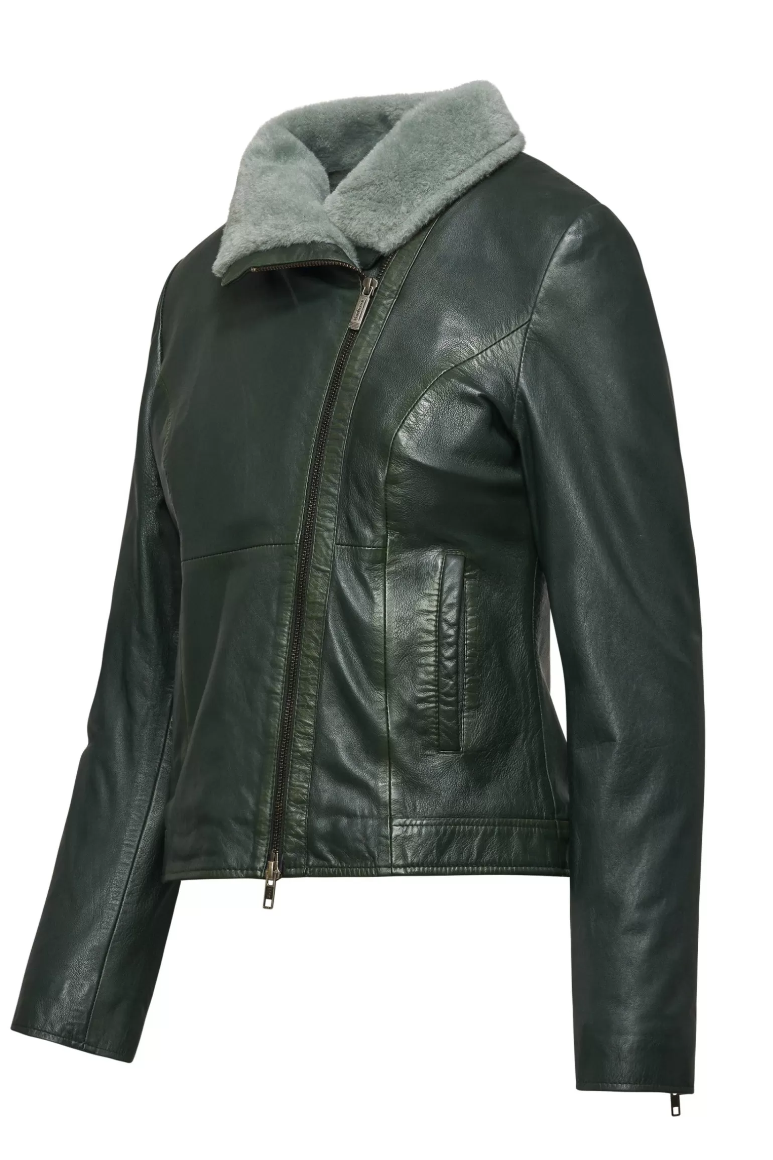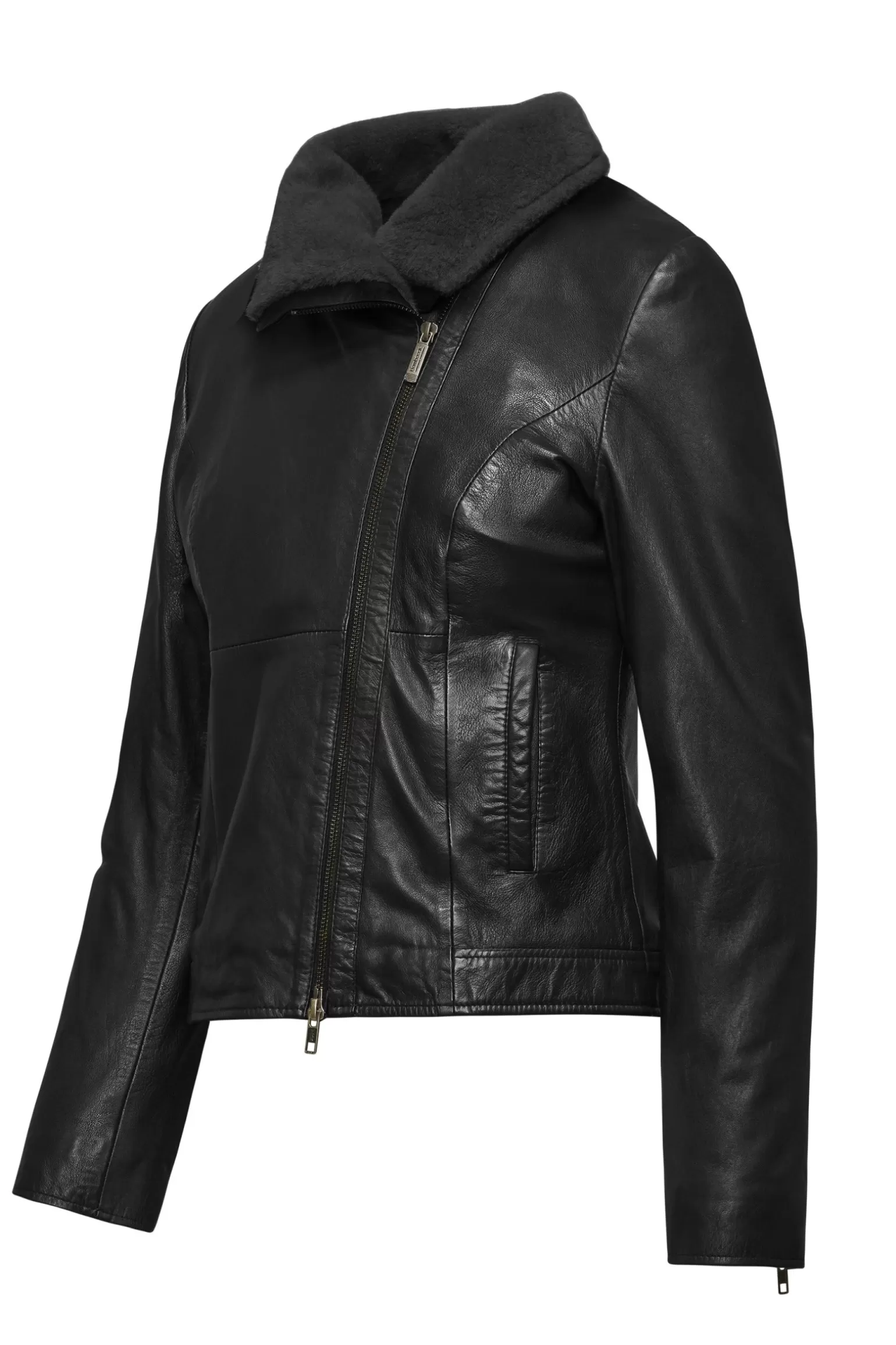 Genuine leather jacket finished with coloured eco-fur. A bold and feminine style garment to complete looks with an extra touch.